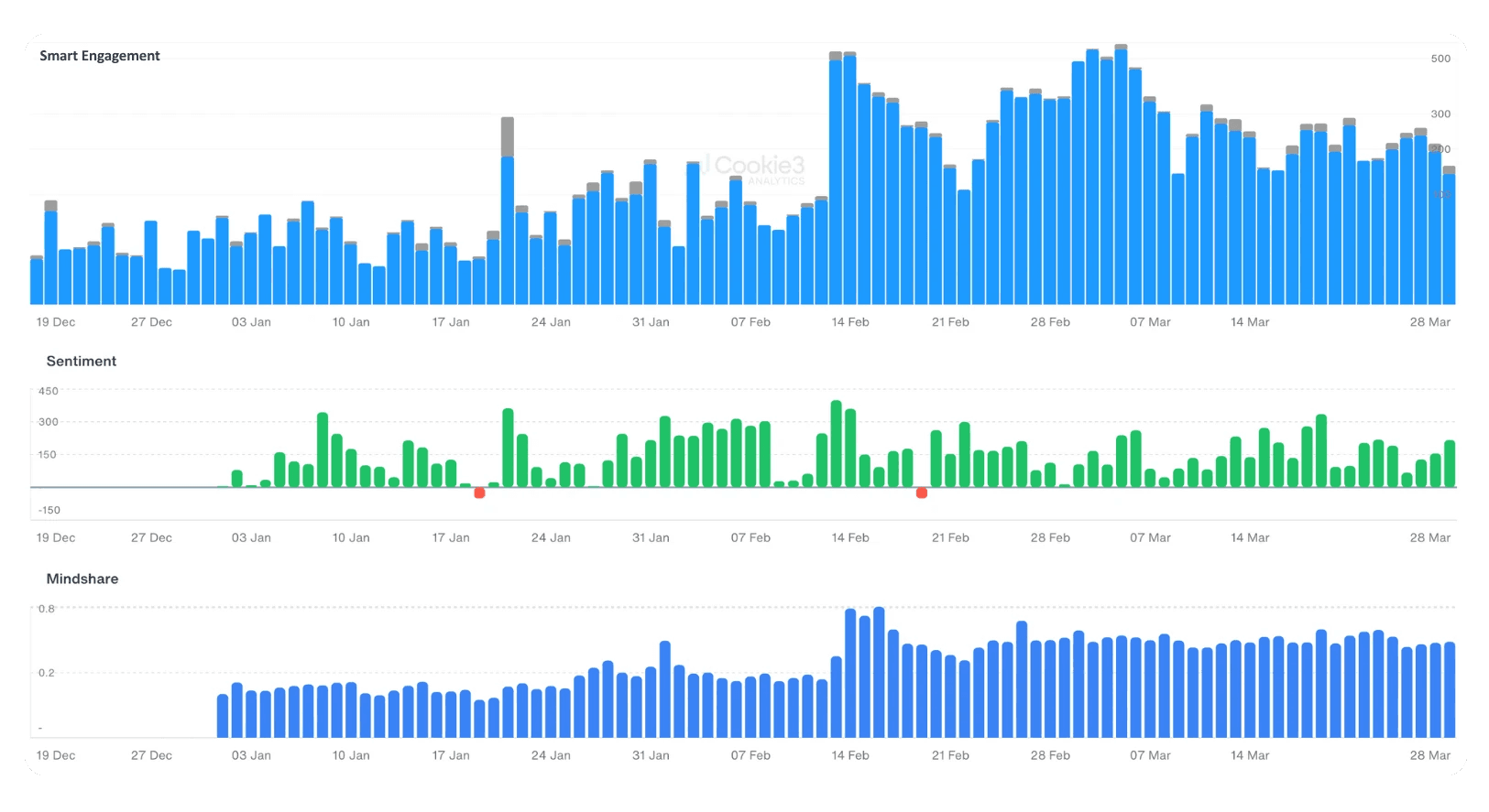 Daily organic mentions on X increased 3×, reflecting a clear return of interest around the ecosystem.